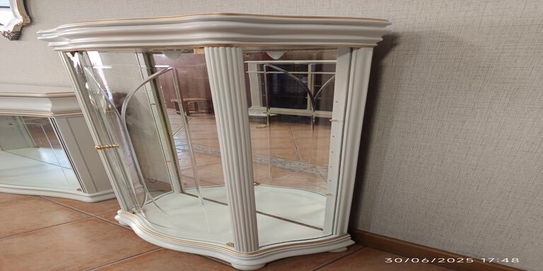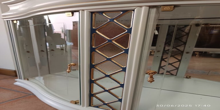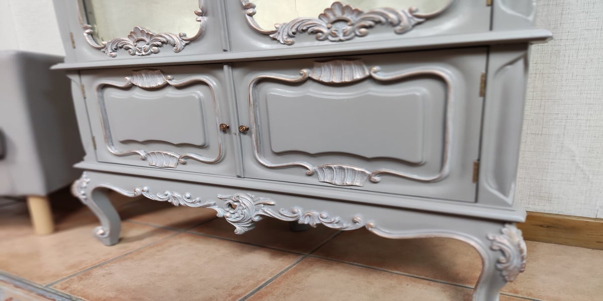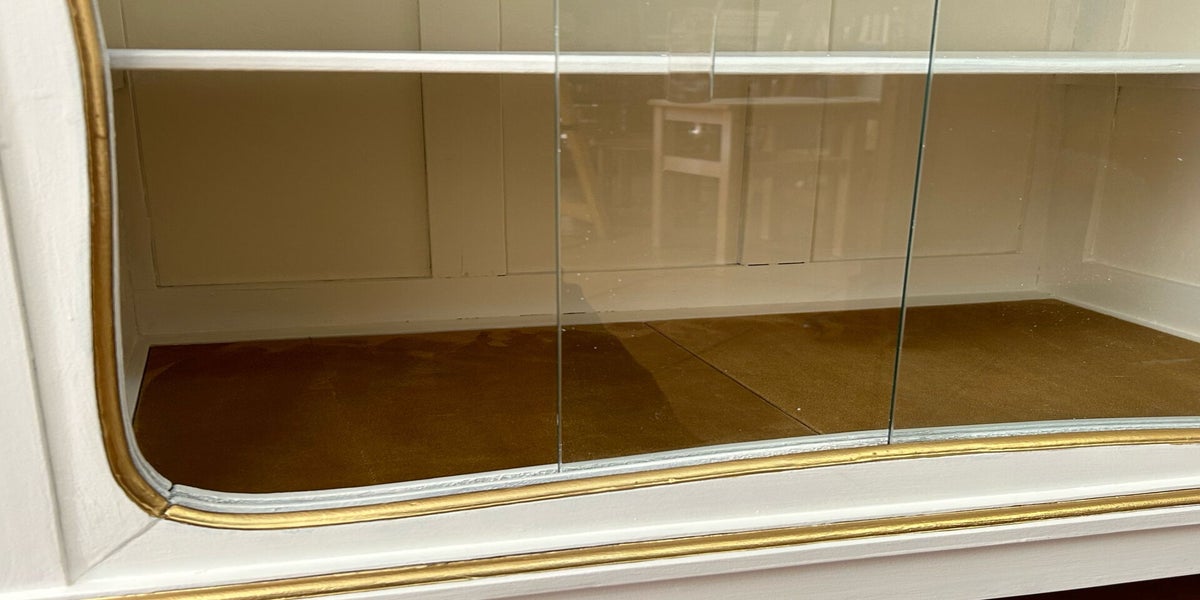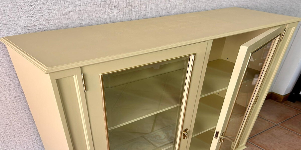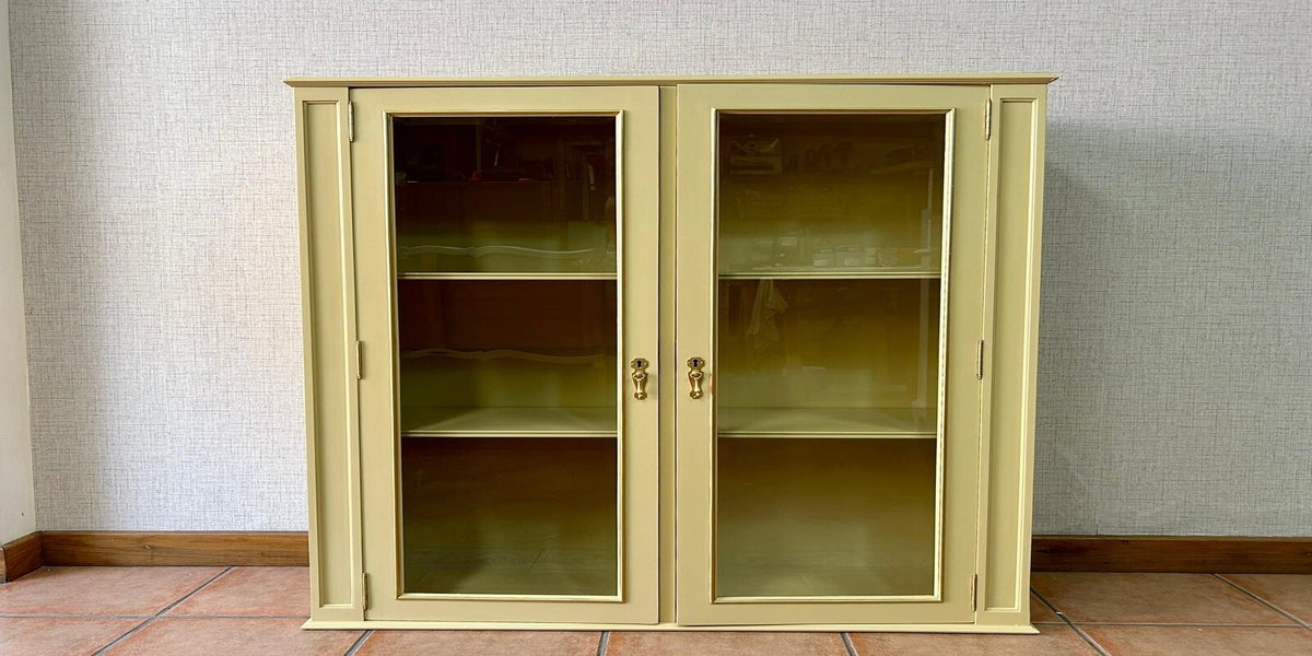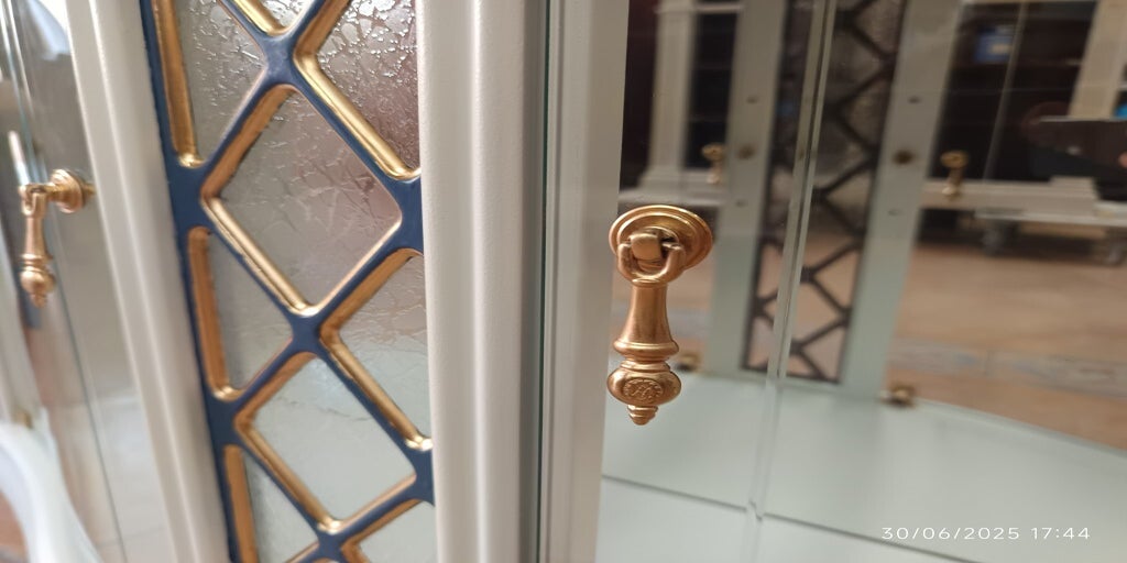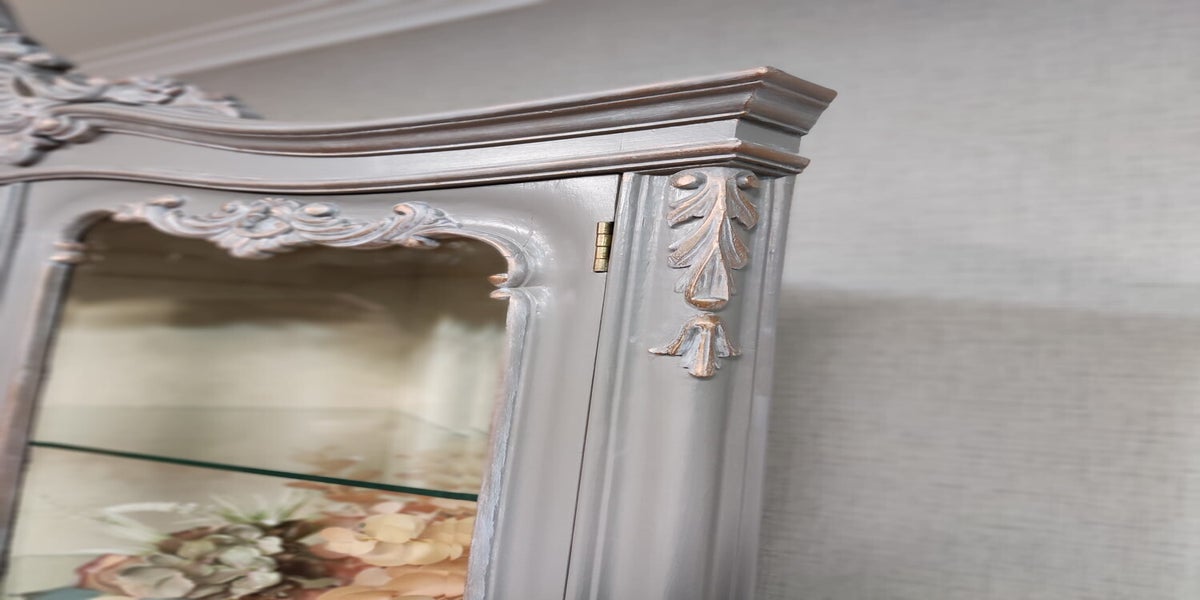 Entre tons de bege e reflexos de cobre, esta cristaleira renasceu.