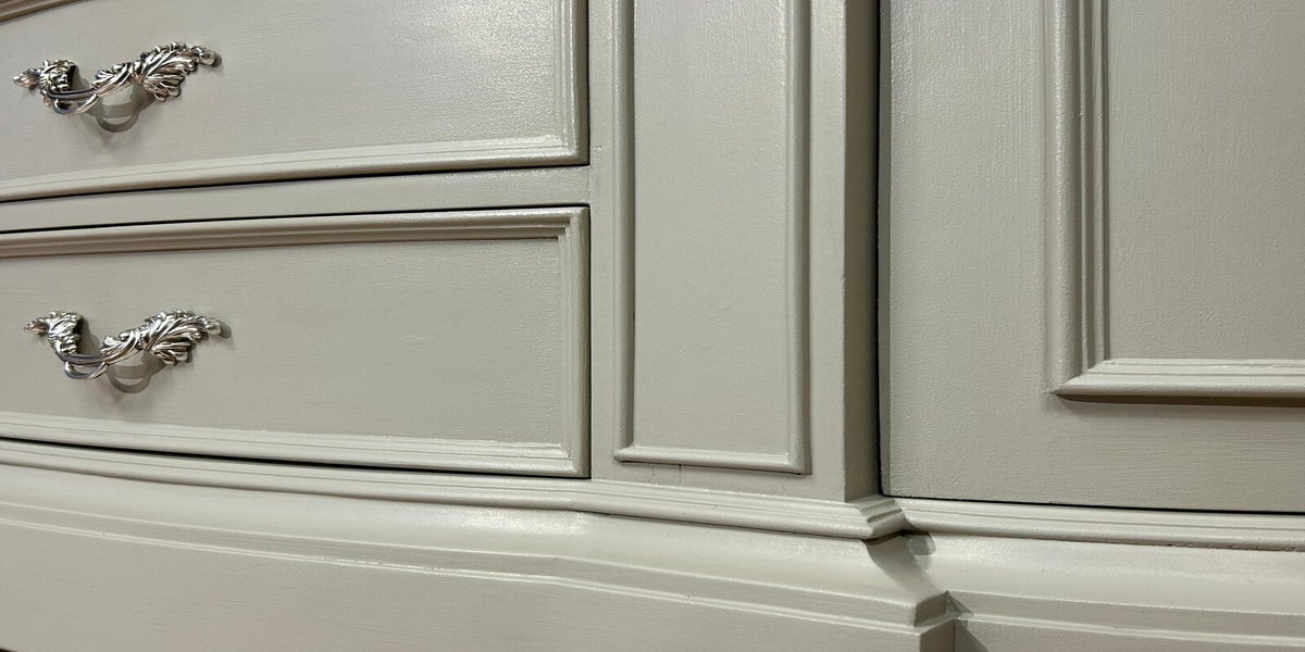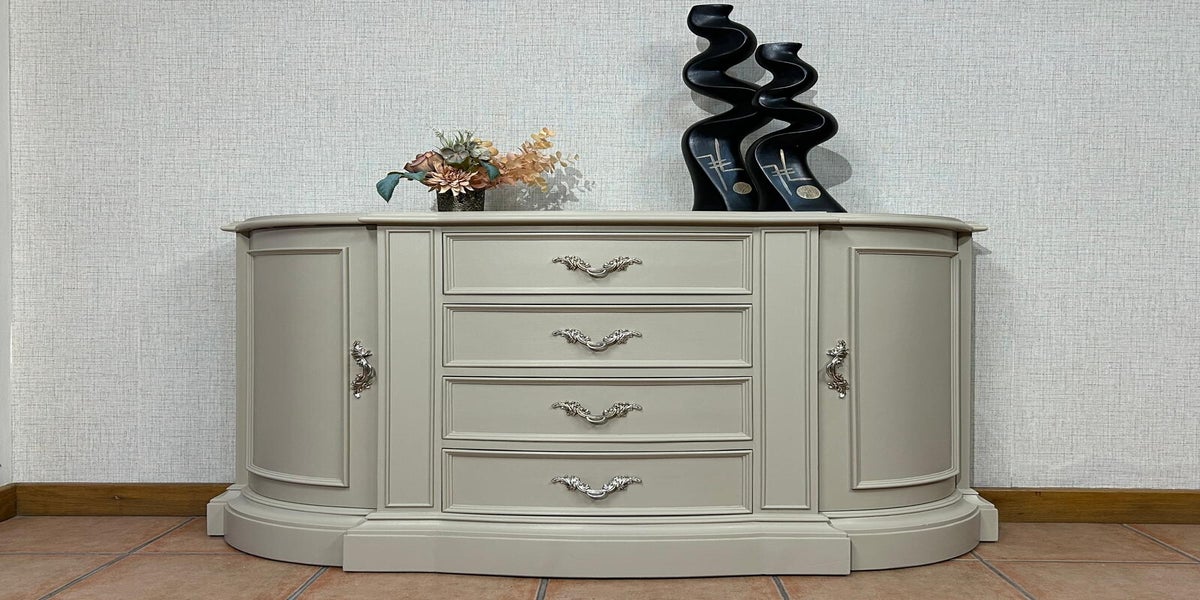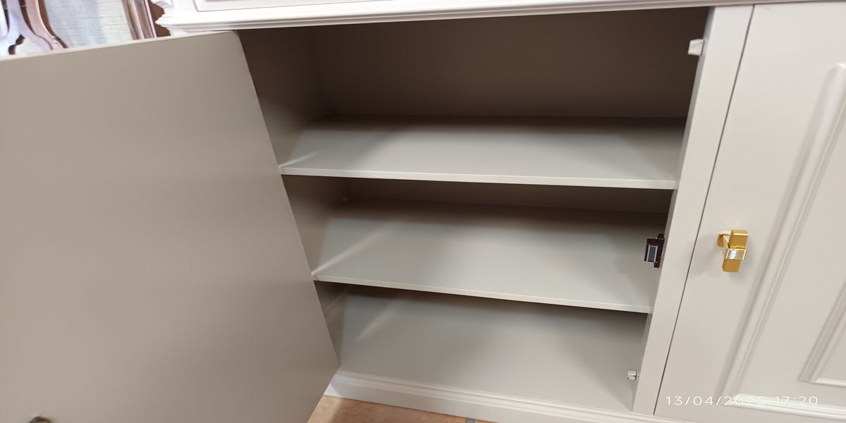 Aparador customizado em Bege com puxadores novos em cinza/prata