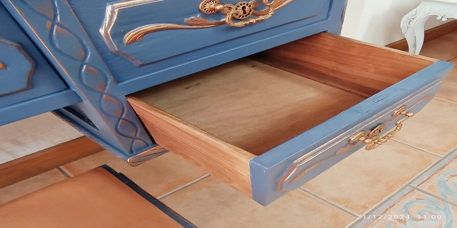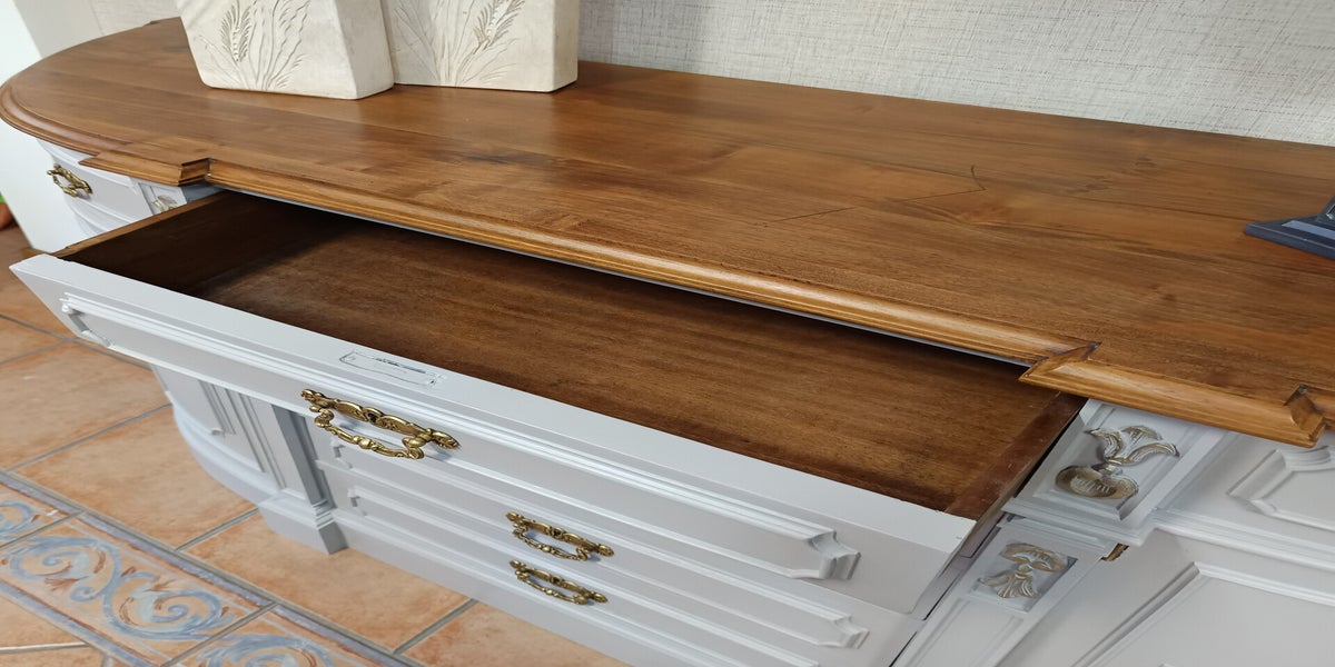 Um trabalho minucioso, feito a pedido do cliente, que devolve vida, brilho e significado a um móvel com passado e personalidade.