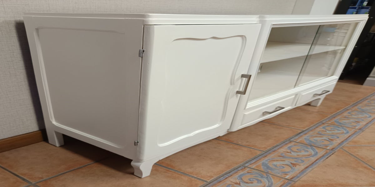 Neste projeto, transformámos um móvel de TV antigo, recuperando a sua estrutura e aplicando uma pintura de acabamento premium. O resultado é um móvel renovado, elegante e harmonioso, que se integra perfeitamente no espaço e ganha uma nova vida — sem necessidade de substituição.