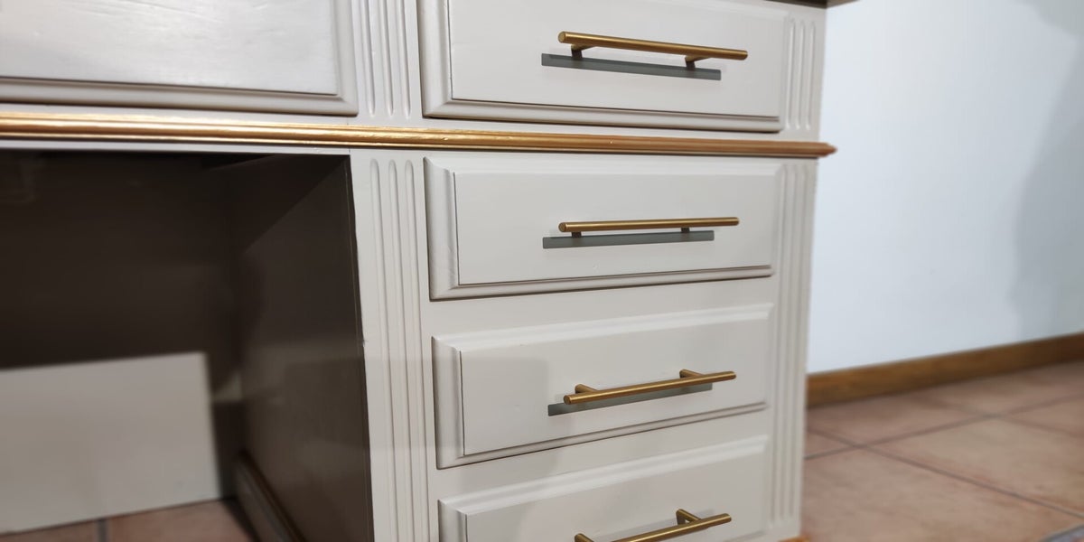 Puxadores novos e aplicação de molduras para um acabamento elegante e distinto.