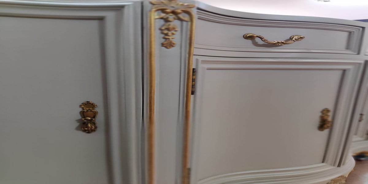 Aparador com acabamento em verniz mate e detalhes em dourado